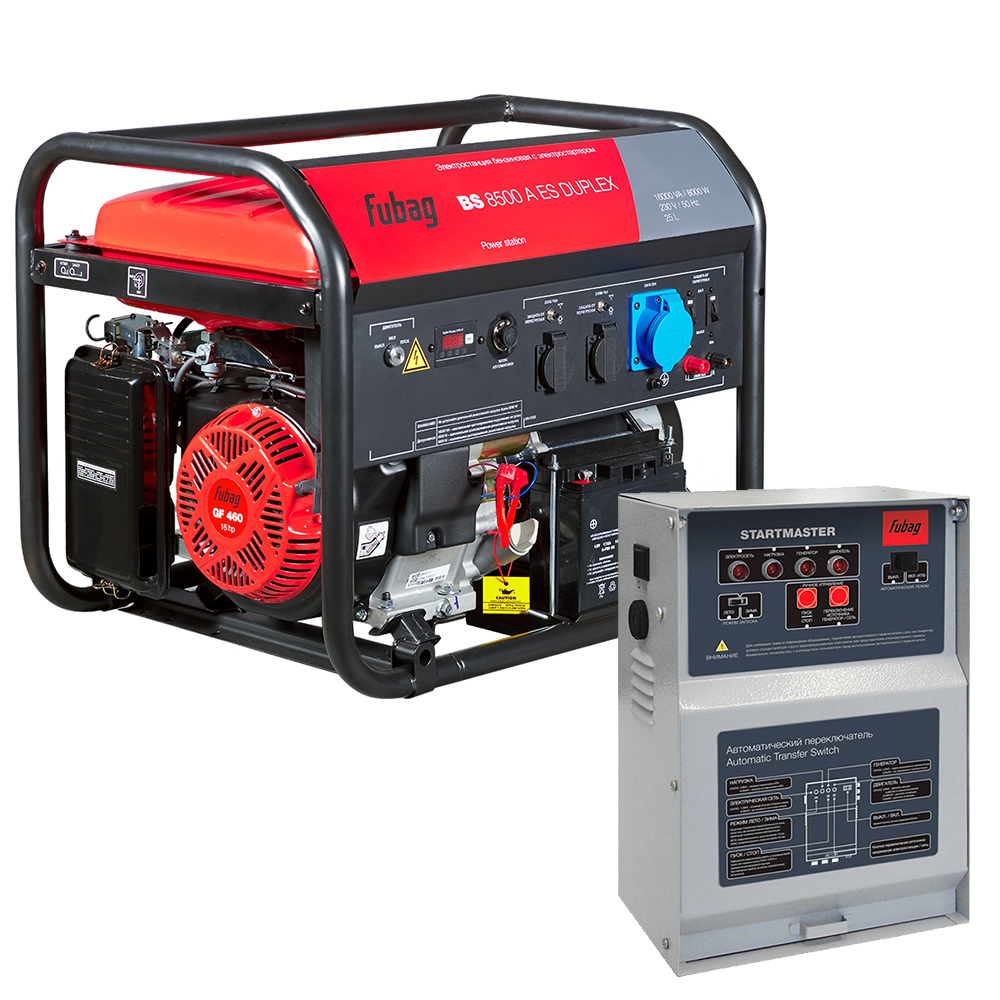 Инструкции о Бензиновый генератор FUBAG BS 8500 A ES DUPLEX с электростартером и коннектором автоматики + Блок автоматики Startmaster BS 11500 D (400 В) для трехфазных сетей в ПОДАРОК